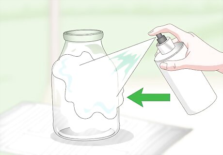 Clean a glass bottle with soap and water. Wash the bottle, inside and out, with dish soap and warm water. Be sure to remove any labels stuck to the outside of the bottle as well. Allow the bottle to air dry before continuing. This technique will give you a smooth, chip-free finish on the outside. Unfortunately, you can't add water to the bottle, or the paint will flake.