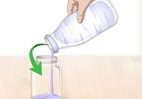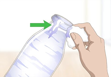Wipe any spills on the outside of the bottle with a damp paper towel. You may have gotten some paint on the outside of the bottle's neck when you poured it into the jar. Use a damp paper towel to wipe up any paint on the outside before it dries. If the paint dries on the bottle before you can get to it, don’t worry. Glass is a smooth surface, so you should be able to scrape the paint off with your fingernail.