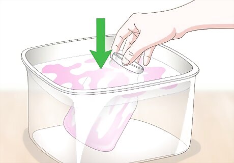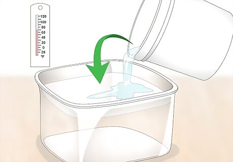 Fill a plastic bucket with room temperature water. Choose a bucket that is taller than your bottle, then fill it with water. The water needs to be deep enough so that you can dip your bottle inside without the bottle touching the bottom of the bucket.