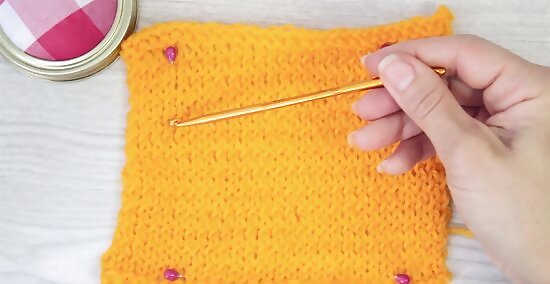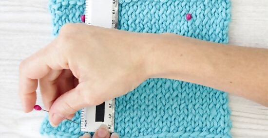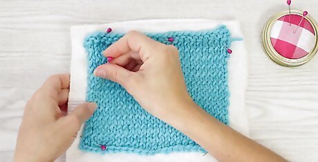 Wash the swatch and lay it flat to dry completely. Read the yarn care instructions on the package and follow the care instructions so the fabric doesn't shrink too much. Then, lay the swatch flat on an ironing board or soft surface and stick a sewing pin into each corner. This blocks the swatch so it keeps the square shape as it dries. It's important to wash and dry the fabric before you measure, since the swatch might get smaller and change your stitch size.