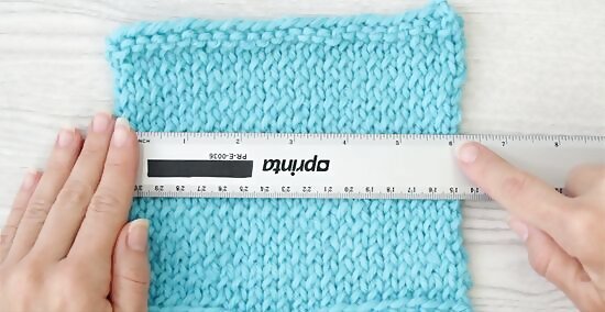 Lay a ruler across the middle of the swatch. Keep the fabric square pinned to the ironing board or soft surface so it lies completely flat. Then, put a ruler horizontally across the center of the fabric swatch. You can use a rigid ruler or fabric tape measure to check the gauge. To get the most accurate measurement, you won't measure right from the edges.