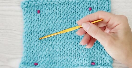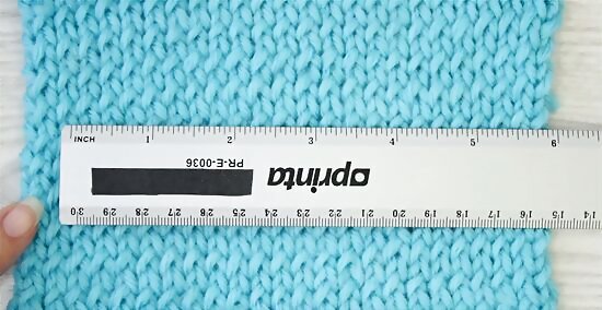 Knit a 6 in (15 cm) square of fabric. Although you'll only need to measure a 4 in (10 cm) square area, knit a larger square so the measurement is more accurate. Work the stockinette stitch, unless the pattern's gauge tells you to work the sample in another pattern, such as a seed stitch. Then, cast off the stitches. To make the stockinette stitch, make a row of knit stitches. Then, create a row of purl stitches. Keep alternating these rows until the swatch is 6 by 6 inches (15 cm × 15 cm). If you'll be knitting your project in the round on circular needles, don't turn the work when you finish a row. Instead, bring the working yarn back to the beginning of the row and work your next row.