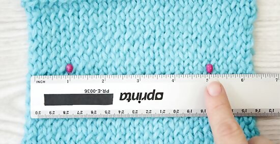 Count the number of rows between the horizontal pins to find the row gauge. Start counting the row directly below your sewing pin and count each row until you reach the bottom sewing pin. Write down the number of rows between the 4 inches (10 cm). This number is your row gauge. Keep in mind that some patterns don't specify a row gauge since they might tell you to work the pattern for a certain amount of inches/centimeters instead.