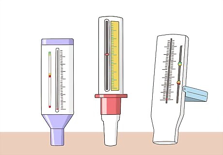 Buy a peak flow meter over-the-counter at a drugstore. There are several different types of these hand-held meters that are available over-the-counter, but they all work in a similar way. Your doctor will be able to recommend a meter that will work for you. There are two ranges of peak flow meters available. Low-range meters are used only for small children, while mid-range meters are for older children to adults.