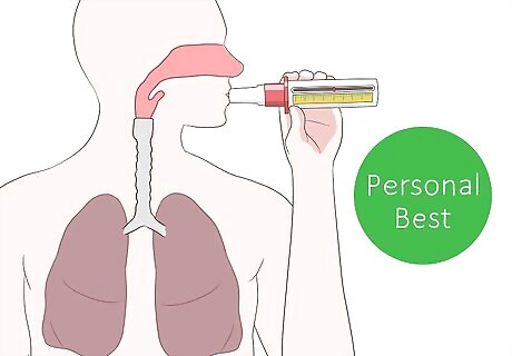 Get your personal best reading by blowing into the PFM with no symptoms. Test yourself with the meter every day for 2-3 weeks and record your highest score each day. After 2-3 weeks, your highest number out of all the readings will be your personal best. Good times to use your peak flow meter to get your personal best reading are between noon-2:00 p.m. and after you take any type of quick-relief medication you may be on. If you are experiencing severe asthma symptoms right now and do not already have a personal best score from a PFM, you should call your doctor immediately. Doctors can use your personal best reading to develop a treatment plan for your condition.
