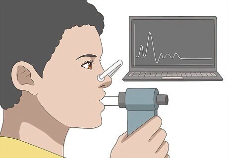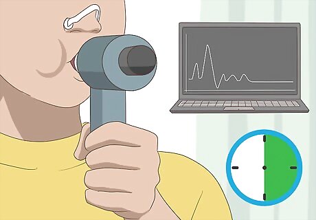 Schedule an appointment with your doctor for the test. Most doctors will perform a spirometry test at least 3 times and take the highest score from the samples. The test may take from 30-90 minutes. Spirometry tests are very simple to perform. A medical professional will instruct you to take the deepest breath you can and blow as hard into the spirometer machine as hard as possible for as long as possible. Other variations of breathing may be performed during the tests. If you are already on medication such as an inhaler, the doctor may ask you to perform the test a second time after using your inhaler or medication to see how it affects your breathing.