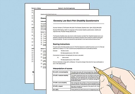 Use the Oswestry Disability Index (ODI) questionnaire for low back pain. The ODI is a numbered index derived from the Oswestry Low Back Pain questionnaire developed in 1980 and used by health care professionals and researchers to quantify disability caused by low back pain. The questionnaire contains 10 topics concerning pain intensity, sexual function, social life, sleep quality and the abilities to lift, sit, walk, stand, travel and care for yourself. The ODI is a 100-point scale derived from the questionnaire and considered the "gold standard" for measuring disability and estimating quality of life in people with lumbar spinal pain. The severity scores from the questions (ranging from 0-5) are added up and multiplied by two to obtain the index, which ranges from 0-100. Zero is considered no disability, whereas 100 is the maximum disability possible. ODI scores between 0-20 indicate minimal disability, whereas scores between 81-100 indicate either extreme disability (bed-bound) or exaggeration. The questionnaire is more accurate for people with acute (sudden) low back pain than it is for those with chronic (long term) back pain.