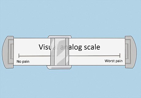 Use the numerical rating scale (NRS) instead. In a busy health clinic, time is often precious, so another quick and easy tool to use to measure pain is called the numerical rating scale. The NRS is similar to a VAS, except the scale is numbered, sometimes from 0-10 or occasionally 0-100, which is a little more specific. Zero represents no pain, whereas the highest number on the scale represents the worst pain imaginable. The NRS can look like a slide-rule tool or it can be a printed scale on a piece of paper. The person with pain chooses the number that best represents their pain level. Like all visual or numbered scales, the NRS measurement is subjective and based on the person's perceptions. The NRS is useful for health care practitioners who want to gauge their patient's response to treatment by measuring pain levels at specific time intervals (like every week, for example). The NRS is also used in the hospital for acute pain, and to gauge a patient's response to a specific intervention, such as administration of pain medication. Unlike the VAS, the NRS has the advantage of being administered verbally, so the patient doesn't have to move, read or write anything.