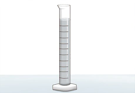 Measure water with a graduated cylinder. It is important to know exactly how much water you are using. This will allow you to calculate how much energy was used to heat the water. Use a graduated cylinder to accurately measure 100 milliliters (3.4 fl oz) of water for the experiment. Record this amount in a notebook.