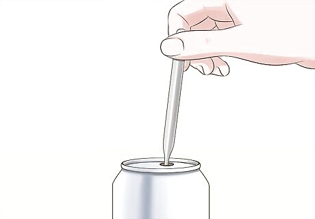 Pour the water into a soda can. An aluminum soda can will conduct heat more efficiently than a glass cylinder. Be careful not to spill any of the water. It is important that the amount of water you recorded is correct.