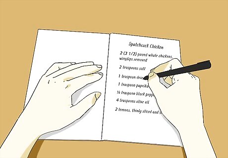 Make the recipe several times to gain muscle memory experience. Many people learn best by actively doing the thing they’re trying to learn. If you have the ingredients available, consider making the recipe several times to help you remember each action. Soon your body will make the movements without you even having to think about it! This method lets you put all of your knowledge to the test: the ingredients, measurements, and specific cooking instructions. If you don’t have all of the ingredients to make the recipe several times, even just pretending to make the recipe while going through all of the movements will help you memorize it.