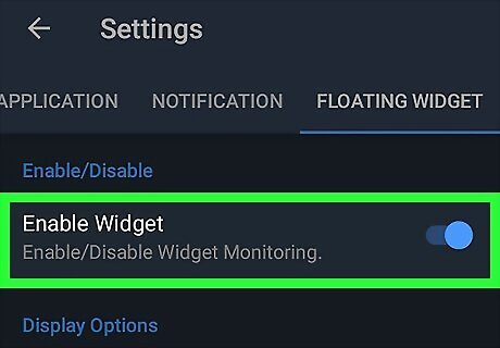 Tap the switch next to the Enable Widget option. It will turn blue to indicate that the floating widget is enabled.