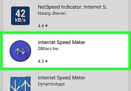 Select Internet Speed Meter. This has a dark blue icon with two white arrows in it and will display in the list of relevant search results.