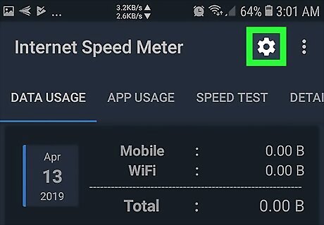 Open the Settings Android 7 Settings menu in the app. This is in the top-left corner of the menu for Internet Speed Meter and has a gear icon.