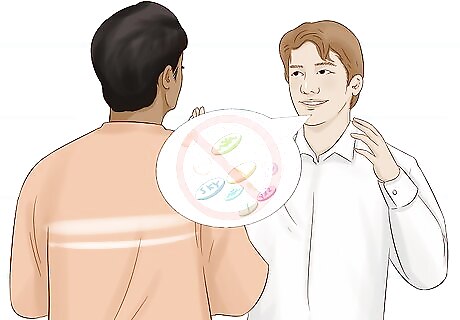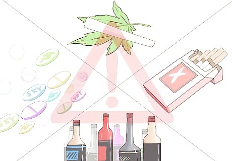 Eat the right kinds of food. What does food have to do with drugs? What you eat has an effect on how your body functions, and how well you feel. If you make a habit of eating junk food and treating your body like you don't care for it, it's not going to feel its best. If your body doesn't feel it's best, you'll be more motivated to lean on drugs as a crutch. Doctors recommend filling your diet with fruits and vegetables, lean protein, whole grains, and plenty of fiber. A diet rich in these foods will give your body the energy and nutrition it needs to keep you happy and drug-free. Eat healthy fats instead of unhealthy ones. Healthy fats include omega-3 fatty acids (flax seed, salmon), as well as monounsaturated fats (avocados, pumpkin seeds). Unhealthy fats include trans fats (partially-hydrogenated oils) and saturated fats (animal fat, such as lard). Drink water and unsweetened teas instead of colas and alcohol. There's nothing wrong with a Diet Coke or a glass of red wine every now and then. In fact, researchers believe that red wine, in moderation, may actually be good for you. But the majority of what you drink should be coming from water. Water will help you stay healthy and hydrated throughout the day.