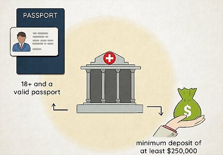 Figure out if you qualify. For the most part, anyone over the age of 18 with enough money can open a Swiss bank account. However, you will have to prove that your money comes from a legitimate, legal source and that you are not exposed to significant political risk (a dictator or other politician from an embattled nation). In addition, citizens of some countries, like Russia and Iran, may be excluded from opening an account because of political sanctions. For many Swiss private banks, you will need an initial minimum deposit of at least $250,000, if not $1 million or more. To qualify, you will have to provide a valid passport as well.