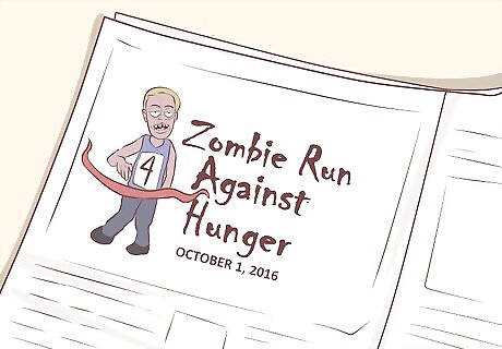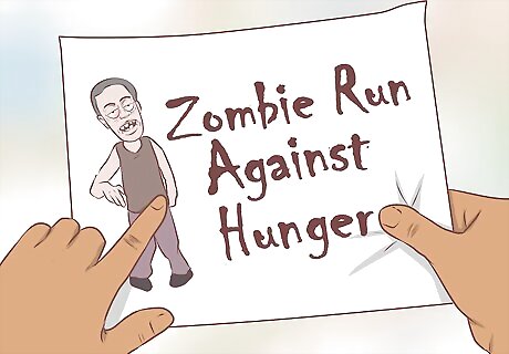 Choose a name and a theme. Your race will definitely need a name. Choosing a theme is optional, but it’s a great way to distinguish your race and get people excited about it. Your name can include something about the charity you’re benefitting. For example, you could call it, “The Downtown 5k for Animals,” or, “November Walk Against Cancer.” If you choose a theme, make sure your name reflects the theme. It could be something like, “Zombie Run Against Hunger,” or, “The Underwear 10k.” Some popular themes ask participants to dress in costumes, or put them through obstacles such as mud or color bombs. The committee should agree on the name and the theme, and include these in all promotional materials.