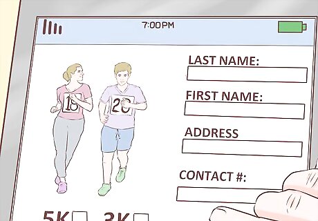 Track registrants. The easiest way to have people sign up for the race is with online registration. There are many online tools you can use to track and organize participants. Having in-person registration available is important, too. Keep in mind that some people (especially older people) may have a difficult time with online registration. You can make paper registrations available at your local running store, and local gyms, or at the headquarters of the charity you’re benefitting. You can also allow for day-of registration at the race site. However, you’ll need to plan for this by making sure you have enough goodie bags, food, and water to accommodate the extra participants. Registration is likely when you’ll also collect money from people. Most runs charge a fee to participate (between $15 and $75, depending on the scale of the race). This registration money is what will cover your costs and then be donated to charity. Some races ask participants to solicit pledges from their friends or family. For example, a person may get their coworkers to each pledge $1 per mile that they walk or run. This money then gets donated instead of (or in addition to) a registration fee.