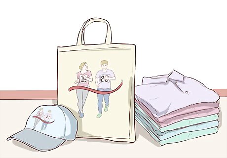 Order giveaways. Races almost always offer participants some kind of token or souvenir to show that they participated. These may be T-shirts, hats, keychains, tote bags, or frisbees. You may also get coupons donated from local businesses that you can include in goodie bags. Make sure you don’t spend too much money on the give-aways. That can eat into your fundraising!