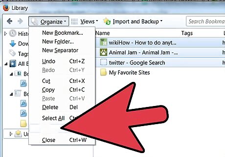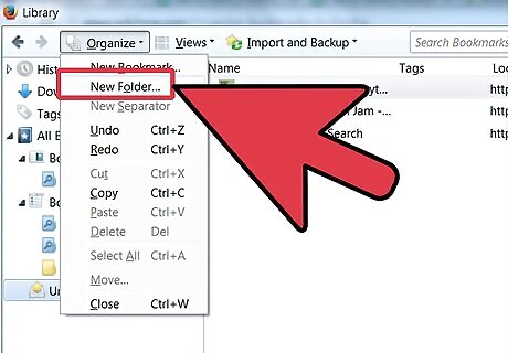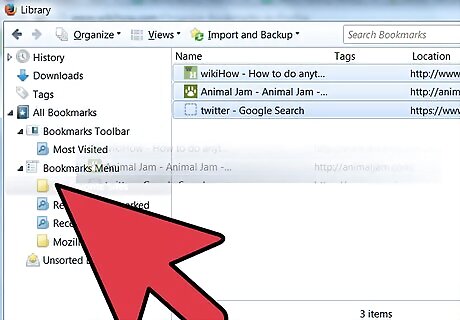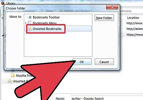 Move your old bookmarks into the new folder. Now comes the process of sorting through your stacks of bookmarks, and deciding what goes where. Should you come across a bookmark that seems to fit multiple filing categories, put it in the very first one you thought of.