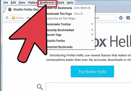 Click on the View menu in your menu bar. Select Sidebar, and then Bookmarks. A sidebar will appear on the left of the Firefox window. You will see at least 3 icons there: Bookmarks Toolbar, Bookmarks Menu, and Unsorted Bookmarks . The Bookmarks Toolbar is the strip across the top, underneath the address bar. Use that for websites you go to constantly, so you never have to dig for them. The Bookmarks Menu is what you see when you click on the Bookmarks menu, and is probably where most of your current bookmarks are.