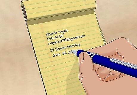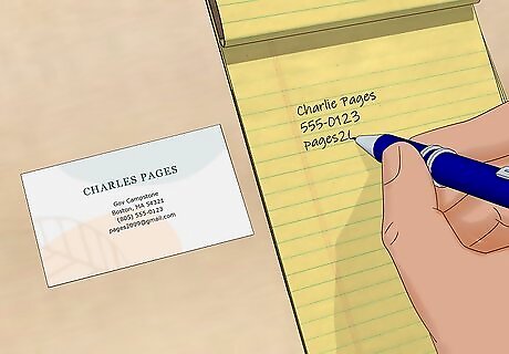 Handwrite notes. Whenever you get a new business card, write down the name of the place where you met within a few days of meeting. This way, you won’t forget. Also, jot a brief note about what you talked about. Then when you contact the person later, you can remind them of the details of your conversation. If the card is glossy and you can’t write on it with a normal pen, try sticking a post-it to the card instead.