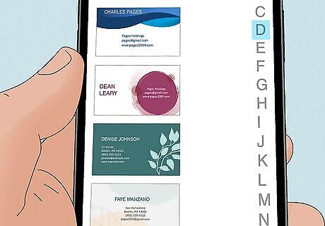 Arrange the contacts appropriately. Depending on your card or contacts app, you will have a lot of choices about the ways you can organize contacts. (You will also probably be able to tag contacts to sort them into different groups, meaning you can organize their information in many different ways.) Here are some ideas on how to put contacts in order: Alphabetize by last name. Categorize by alphabetical order of name or company. City where you met. Category of industry.
