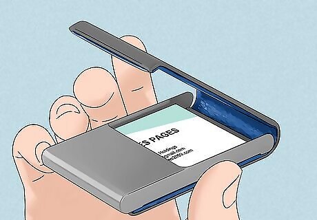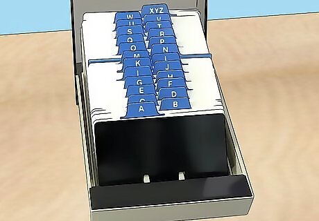 Store useful cards. Once you’ve made sure their information is easily accessible, it’s time to figure out what to do with the business cards. The “old-fashioned” habit of keeping useful cards, even if you just use a rubber band in your desk drawer, is a good backup for computerized information. A Rolodex is easy to add and subtract cards from, and its rotating motion makes it easy to scan through cards. However, it is big and bulky, and may add an unintentionally retro look to your desk. A business card holder is attractive and compact, with individual clear sleeves to hold each business card. Avoid having to reorganize the whole thing every time you add a new card by leaving several empty slots in each alphabetical section. You can also use drawer dividers to help keep your business cards divided in your desk.