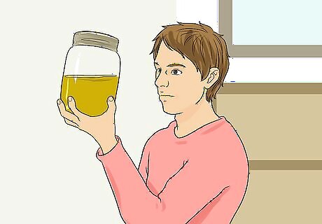 Check to see if the product is clear. When making your ozonated olive oil or purchasing it from a manufacturer, it is important to check the oil’s color. Olive oil that has been properly ozonated will be clear. The final product should be the same opacity as water. If you are making ozonated oil yourself, let the mixture ozonate until it is completely clear. Because various machines take wildly different amounts of time to make ozonated olive oil, be sure to regularly check on the color of your oil. Avoid buying any ozonated oils that are colored. The manufacturer may have added a dye to the oil, which might irritate your skin, or is hiding the fact that the oil is only partially ozonated.