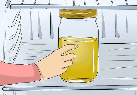 Store the oil in the refrigerator. Once your oil is ozonated, cover it with a lid and place it in your refrigerator. After being stored in the refrigerator, your ozonated olive oil should be good for up to 30 days. You can also store it in your freezer for up to a year.