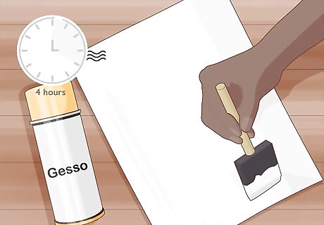 Paint a layer of gesso on your work surface and allow it to dry for 4 hours. Stir an acrylic gesso with a stir stick to ensure it’s properly mixed before using it. Dip a foam brush in the gesso and wipe off any excess. Start in the center of your work surface and spread the gesso to the edges so it creates a thin, even layer. Set your work surface aside where it won’t be disturbed and let it dry for at least 4 hours before you start working. If you don’t gesso your work surface, the oil paints can eat through the paper or canvas over time and ruin your painting. Avoid using oil-based gesso since it will take a long time to dry.Variation: If you want a tinted background, mix in paint with your gesso and stir it together until they’re thoroughly combined. Add more paint if you want the color to appear more vibrant, or mix in more gesso to make the color lighter.