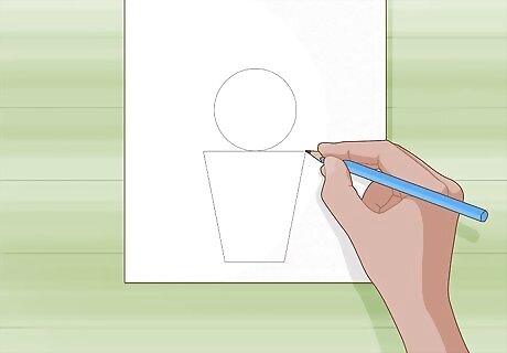 Add an upside-down trapezoid underneath the circle for the pot. Draw a horizontal line so it crosses through the outline on the bottom of the circle. Then sketch in lines coming down from the end of the horizontal line so they’re at a 45-degree angle going toward the middle of the paper. Connect the ends of the angled lines with another shorter horizontal line to form the bottom of the pot. You don’t need to include a pot on the bottom of the cactus if you don’t want to.