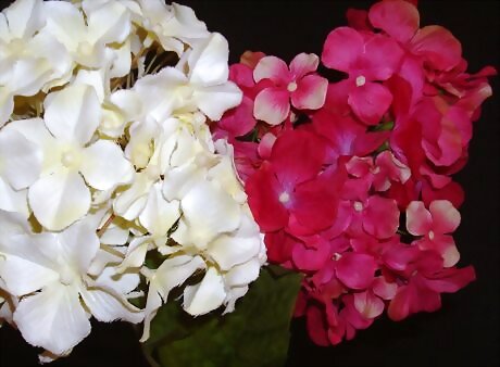 Look closely at the luscious blooms of the lilac and hydrangea because their large heads are made up of many small flowers clustered together, designating them as "cluster" blossoms. Start by outlining the basic shape of the blossom, round for hydrangeas and elongated for lilacs. Within that shape, make many smaller circles for individual flowers. Divide each tiny flower into small petals and at the center of each flower make another small circle which can later be colored to define it.