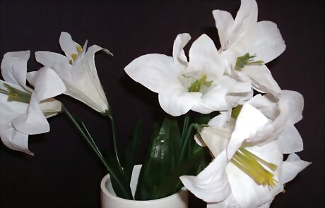 Observe the single trumpet or cone flowers like the holly hock, lily, or amaryllis. The edges of the flaring trumpet can be curved or ruffled. Deep inside the center of the trumpet are long, thin strands which often release specks of pollen onto the petals.