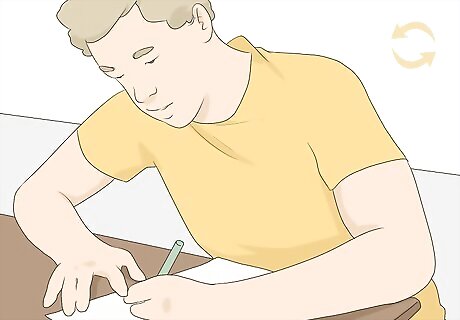 Take a few deep breaths if you have exam anxiety. If you're feeling anxious when you go in, try a bit of deep breathing. Close your eyes and breathe in deeply to the count of 4 through your nose. Hold it for 4 beats and then breathe out to the count of 4 through your mouth. Try this a couple of times to see if it calms you down. Remind yourself that you studied hard for the test and you're ready to take it. Tell yourself you can do it!