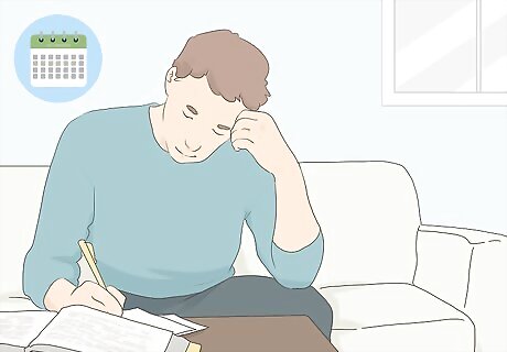 Spread your studying out over a few weeks. Avoid trying to cram all the information you need into your head the night before the exam. Work a little each day for a couple of weeks so that the information sticks in your brain. Try scheduling 15-30 minutes each day to prepare for the exam. Cramming is not very effective, and you're less likely to pass if you use this method. Plus, this information is important; it helps you stay safe on the road and keeps you from getting tickets. Often, when you cram, you only retain the information for a short period.