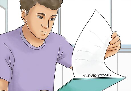 Read the course syllabus. Chances are your teacher supplied you with a printed or digital document at the beginning of the school year containing essential information about the class. This syllabus likely includes information about the course structure, your teacher's expectations of you, and possibly even a list of projects or assignments and their projected due dates. Look over the syllabus carefully to figure out what you need to do to succeed in the class and plan ahead for deadlines. If your teacher did not supply some kind of syllabus for the class, you will have to speak to them directly. Before doing this, make sure your questions have not already been answered in your first-day class notes or in previous email correspondence from your teacher. If you were given a paper syllabus, consider scanning it and saving an electronic copy on your computer. This way you can easily print another copy if you lose or damage the original without having to ask your teacher.