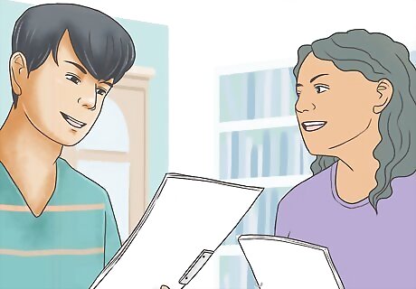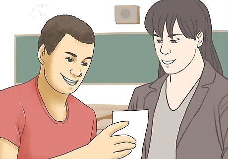 Ask a classmate to be your study buddy. If there are people in your class who seem to understand things better than you do, ask them to pair up with you for study sessions. After all, they are probably putting in study time already and probably won't mind assisting you with the material. This kind of deal can be helpful to everyone involved, because your friend will retain information better if he helps explain it to you and you will have a patient, knowledgeable peer to study with. When forming student work groups for collaborative projects, choose group-mates who are strong, committed students. It will be very difficult to get anything done if the other members in your group are also struggling, are always off task, or don't care about the class. If you find yourself in a group that won't mesh well with your goals for the class, politely request that your teacher place you in a different group (and be sure to tell her why you want this). Don't expect your classmates to teach you the material. Even if they seem to get the material, they are also just learning it! Your classmates' advice or instruction should always be supplemental to more reliable sources; always consult your teacher or course textbook when in doubt. You can be more certain that the information you're getting is reliable if it comes from multiple sources.