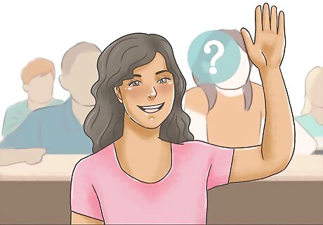 Ask questions in class. Your greatest resource for doing well in class is your teacher. Not only is she a trained and licensed educator, but she is the one grading you. If you encounter a topic or assignment during class that confuses you, speak up! Find an appropriate time to raise your hand or speak to your teacher one-on-one so you don't leave class without having your question resolved. Asking questions during class shows your teacher you care about learning the material and are making an effort to do well in her class. This is guaranteed to be appreciated by your teacher, so long as your questions are relevant to the subject and not inappropriate. If you don't have an opportunity to ask your question as soon as it comes to you, write it down so you can ask your teacher later. Depending on your teacher's preferences, you can even send her an email about it so she can respond to you directly or during your next class meeting. Remember that if you have a question about something, you probably aren't the only one. In this sense, asking questions in class is almost like doing your classmates a favor that helps you out, too!