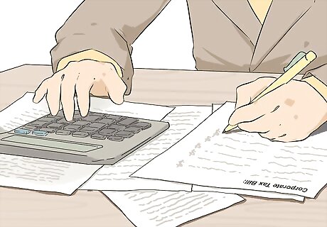 Determine your corporate tax bill. As of 2019, the corporation tax rate on company taxable profits is 19% over the course of the accounting period. Your accounting period is typically a calendar year. You can deduct the costs of doing business, including supplies and operating expenses, that you incurred during the accounting period. You may also be entitled to capital allowances for the equipment, machinery, vehicles, and other assets you use in your business. Once you've deducted all of your expenses, calculate the tax you owe on the remaining profits. This is the amount of taxes you owe.