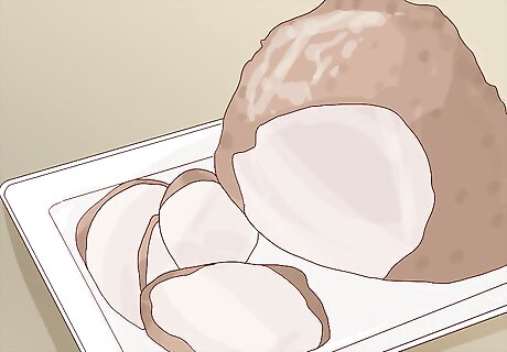 Bake a ham. Ham is one reason why people get so excited for the holiday season. Slather the outside with brown sugar, honey or molasses, then bake it, slice it and serve it piping hot. One large ham can easily feed a crowd of a dozen or more, and pairs well with many different types of side dishes. Hams can take hours to cook all the way through, so plan ahead to allot yourself enough time.