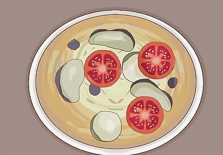 Provide some hors d'oeuvres. Think of a few simple finger foods you can put out as you get the main course ready. You don’t have to get too complicated—Swedish meatballs and cheese balls with crackers are popular holiday appetizers, or you could splurge on a nice baked brie and some fresh fruit. Tell your hungry guests to help themselves until dinner is served. Light appetizers will make it easier for your guests to wait on a complex meal that’s awaiting its finishing touches. If you want to keep things simple, lay out a charcuterie platter with a selection of cured meats, cheeses, olives and bread.