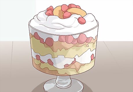 Put together a trifle. Trifle is an essential part of Christmas cooking to many families. Stack airy sponge cake between layers of rich custard and fruit-flavored jelly. With so many scrumptious components, every bite of this dessert is like a little surprise. Its light consistency makes it manageable after a big meal. The layers of a trifle can come in many different colors and flavors. Trifles take a lot of effort to put together. Don’t hesitate to buy one premade if you’re running short on time.