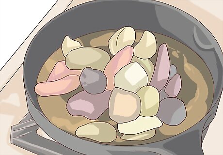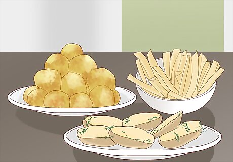 Have some hearty potatoes. As a heavier side, you can’t go wrong with potatoes. These can be prepared in so many ways: baked, mashed, au gratin or simply chopped, drizzled with oil and sage and thrown under the broiler. In fact, potatoes are so versatile that you can get away with serving them in a couple different dishes, if you wish. If you’re serving more than one potato dish, make sure they’re sufficiently different in terms of flavor, texture or presentation. Too much of one type of food can seem repetitive. Boil or pressure cook potatoes to get them done faster.