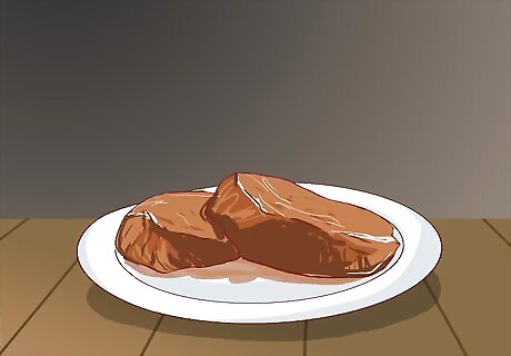 Make a traditional beef dish. People have long served beef on Christmas Eve. Since it’s a more substantial meat, a medium-sized roast, tenderloin or prime rib can be enough to satisfy many hungry guests. Whatever cut you choose, cook the beef to the right temperature, and use a light hand when flavoring it. Let the meat speak for itself. Prime rib is best enjoyed on the rare side, while roasts should be a little more done, and other cuts can be cooked to individual preference. Pair your beef dish with a red wine sauce, horseradish cream or brown gravy.
