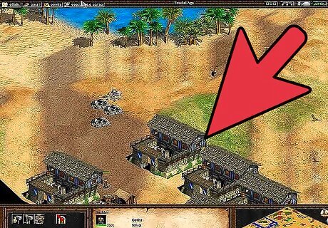 During the Feudal Age research, build a barracks using one of your lumberjacks. The barracks doesn't need to be placed anywhere strategic, as you will be building many more. The creation of militia during the research and during the Feudal Age should be avoided due to the high costs. Infantry become much cheaper during the Castle and Imperial Ages.