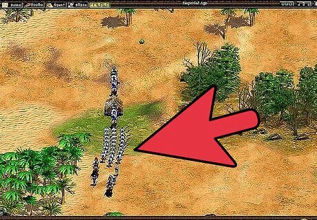 Attack your enemies! Set your army to aggressive (if it hasn't - aggressive is the default) and send your troops to attack castles, town centers, military buildings, monasteries, and most importantly, villagers. Armies in Age of Empires II can consist of a maximum of 40 troops. Remember, you must always constantly be on the offensive. During the Imperial Age, if for any moment that you are not attacking an enemy with your army, you are not taking advantage of the Goths' superior infantry!