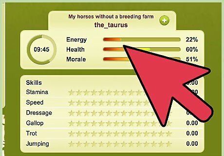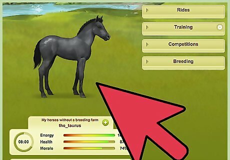 Reach milestones. As you play, your horse will age. There will be different milestones that s/he reaches. When your horse is old enough to play games (8 months), there are some methods you can follow (follow this link for a schedule: http://www.howrse.com/centre/forum/sujet?id=144116&sujet=1117812). It is essential to follow the schedule; it will allow for the maximum gain of genetic potential (which you can read about in the breeders manual). One of the milestones your horse will reach is sexual maturity. This happens at 2 years and 6 months. If you have a mare at this point, you may be tempted to breed her so that you can have another horse. If you want, you may, but it will take a while to earn your money back as you have a low-paying job, and you can't sell a horse until 10 days of seniority. Your mare, however, will be fully trained and needs BLUPing. Give her lessons every day to continue adding skills until she is thirty years old, and enter her in lots of competitions to get her BLUP up. She needs to win 20!