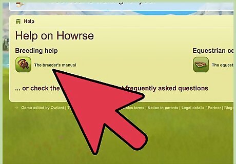 Read the breeder's manual. This is an important guide, which will tell you about caring for your horse in the game, making money, breeding and trade. If you want extra bonuses and a walkthrough, do the quests at the top of your first foal's page. The person leading is named Ow. Do the walkthrough. It will give you all the basics of the game, and in the end, it will fully train your first horse and give you a second to breed with.