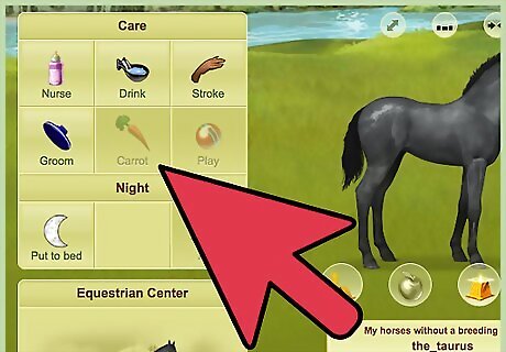 Take care of your horses. Feed, groom, stroke, water, and give him a turnip if you have one. Do this stuff to both of your horses. Do not age your horse at this time.